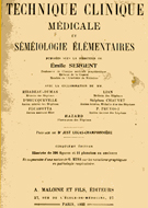 Techinique Clinique Médicale et Séméiologie Élémentaires - 1922 Émile Sergent capa meia inglesa c/ ferros de ouro na lombada; 1056 pág ilustrado com fotografia, gráficos e ilustrações