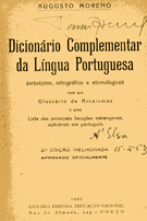 Dicionário Complemenar da Lingua Portuguesa - 1938 (Ortoépico, ortográfico e etimológico) com um Glossário de Arcaísmos e uma lista das pricipais locuções estrangeiras aplicadas em português Augusto Moreno 2º edição melhorada Capa - um pouco gasta |