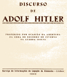 Discursos de Adolf Hitler - 1942 Proferido por Ocasião da Abertura da Obra de Socorro de Inverno na Guerra 1942/43 Serv. de Inf. da Legação da Alemanha - Lisboa broch; 31 pág. |