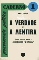 A Verdade e a Mentira - 1971 (algumas notas em resposta a "O Integralismo e a República") Mário Saraiva Pensamento político - caderno nº 1 broch; 75 pág. |