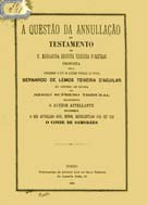A Questão da Annullação do Testamento de D. Margarida Augusta Teixeira D'Aguilar Proposta pelo Conselheiro e Juiz do Supremo Tribunal de Justiça Bernardo de Lemos Teixeira D'Aguilar em Recurso de Revista no Mesmo Tribunal Recorrente o Author Appellante recorrido o Réo Appellado José, Menor, Representado por Seu Pai O Conde Samodães - 1881 capa mole; 87 pág estimado
