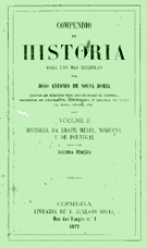 Compendio de História - 1877 (Para uso das escolas) Vol II (História da Edade Média, Moderna e de Portugal) João António Sousa Doria lombada com pequenos defeitos; folha de rosto com pequenos picos de húmidade capa mole; 158 pág |