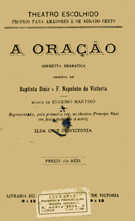 A Oração - s/data Operetta Dramatica Original de Baptista Diniz e F. Napoleão de Victoria musica de Eugenio Martino Representada pela primeira vez, no theatro Principe Real em festa dedicada à actriz Ilda Cruz de Victoria |
