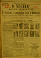 O Século - 5º ano nº1.465 Edição da noite - 11.11.1918 "HORA SAGRADA - É ASSINADO O ARMISTÍCIO COM A ALEMANHA" |