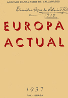 Europa Actual - 1937 António Canavarro de Valladares broch; 288 pág capa ligeiramente suja e com picos de húmidade com assinatura de posse na capa |