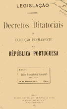 Decretos Ditatoriais de Execução Permanente da Republica Portuguesa - 1911 Editor: João Fernandes Amaral - Procurador capa em tela sobre cartolina - apresenta algumas manchas com dedicatória do autor na folha de rosto |
