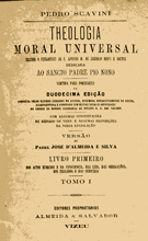 Theologia Moral Universal -1879 Pedro Scavini Segundo o pensamento de S. Affonso M. Liguurio Bispo e Doutor dedicada ao Sancto Padre Pio Nono Com algumas Constituições do Bispado de Vizeu e algumas disposições da nossa legislação Versão de Padre Jose D'Almeida e Silva Tomo I ao V - capa meia inglesa e lombada a ferros de ouro algumas danificada na parte sup. da lombada Editores Proprietários - Almeida & Salvador - Vizeu |
