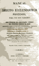Manual de Direito Ecclesiastico Parochial - 1874 António Xavier de Sousa Monteiro Capa meia francesa em cartão e pele c/ lombada a ferros de ouro 2ª edição correcta aumentada |