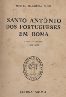 Santo António dos Portugueses em Roma - 1951 Livro I - Origens 1363 -1508 Miguel D'Almeida Paile broch.; 380 Pág. |