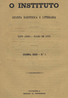 O Instituto Revista Cientifica e Literária Ano XXII segunda série nº7 1/1876 Ano XXIII segunda série nº9 3/1877 Ano XXVI segunda séria nº1 7/1878; Ano XXX segunda série nº6 12/1882 Ano XXXI segunda série nº5 11/1883; avulso - 7 euro cada |
