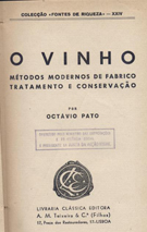 O Vinho Métodos Modernos de Fabrico Tratamento e Conservação Octávio Pato 1957 encadernoda; 340 pág. |