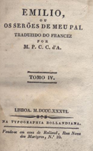 Emilio, ou os Serões de Meu pai tradução de M P C C d'A tomo IV inteiro em pele; lombada a ouro |