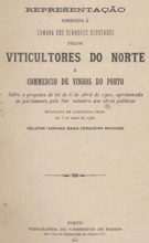 Representação dirigida à Câmara dos Senhores Deputados Pelos Viticultures do Norte e Comercio de Vinhos do Porto Relator - Adriano Maria Cerqueira Machado 1900 broch.; sem contra-capa |